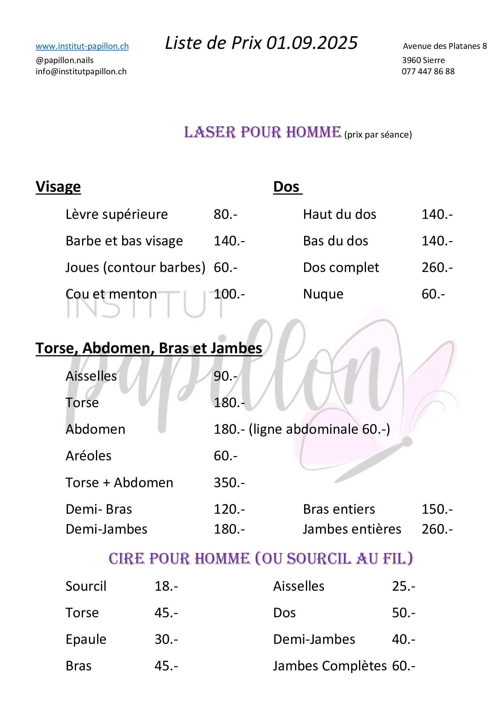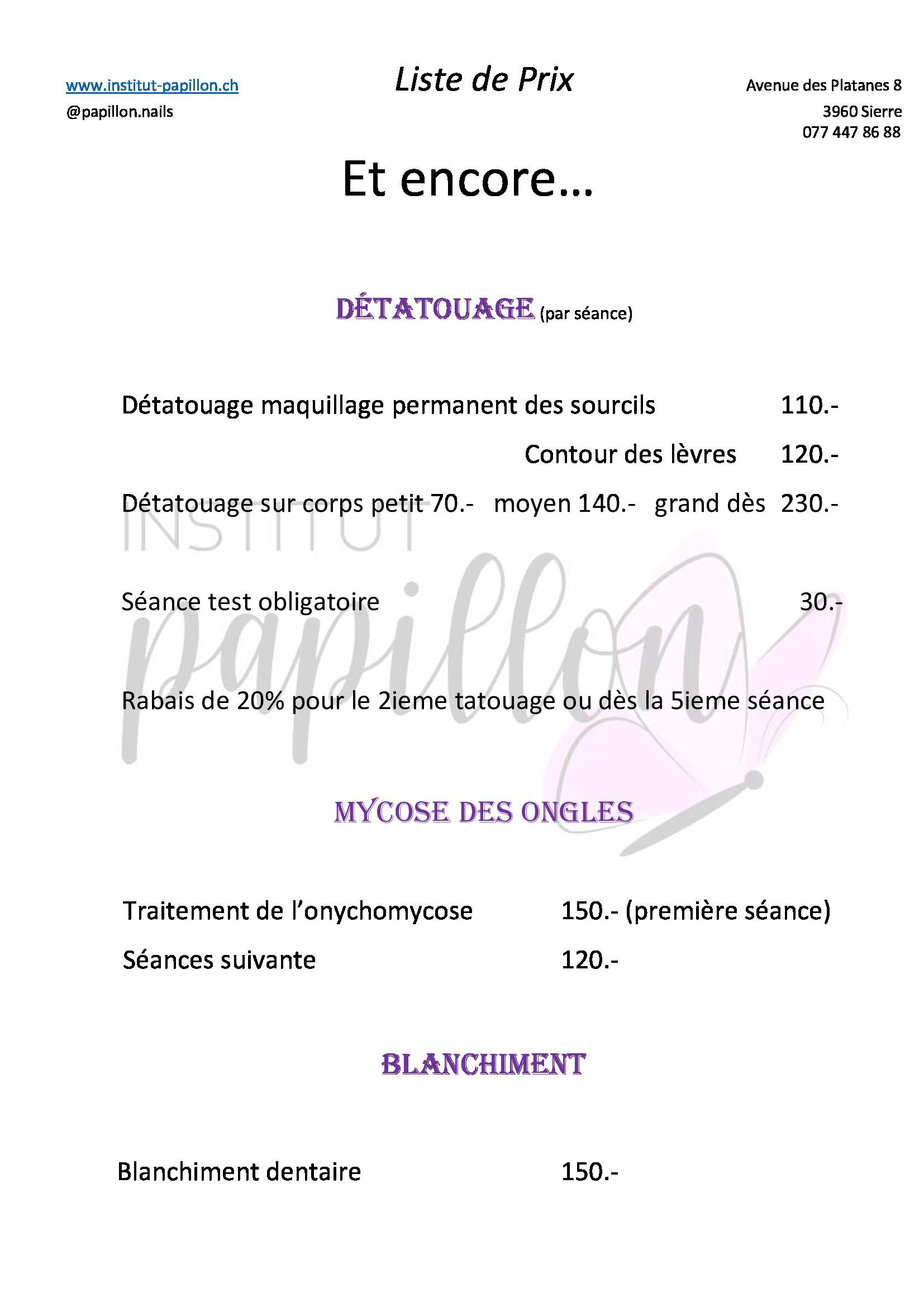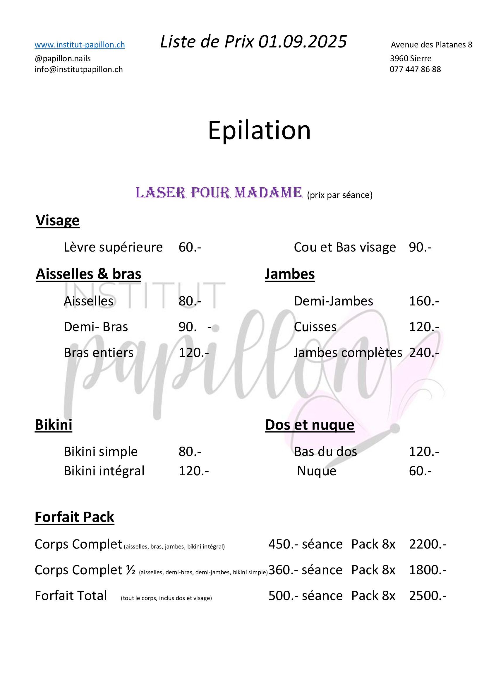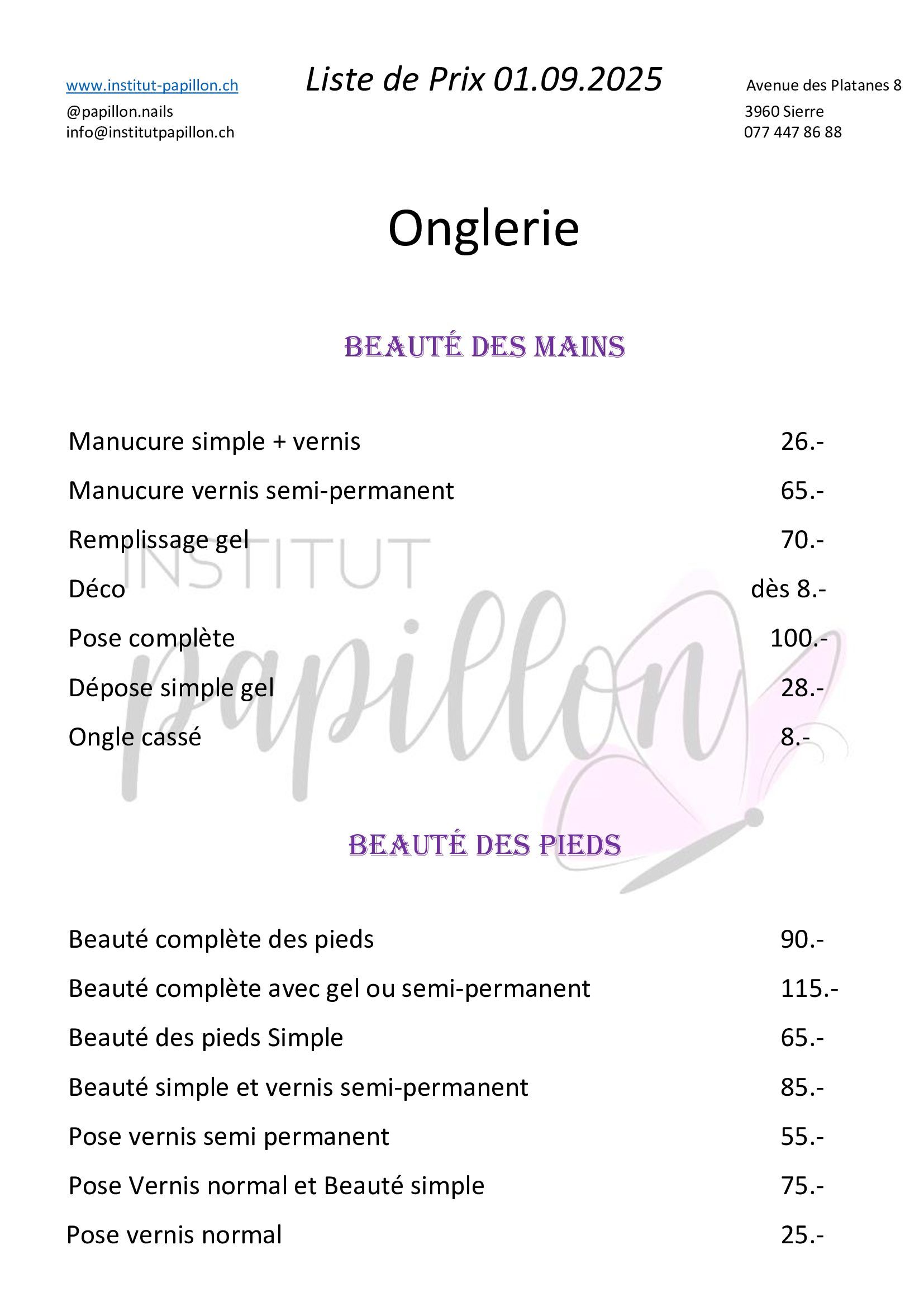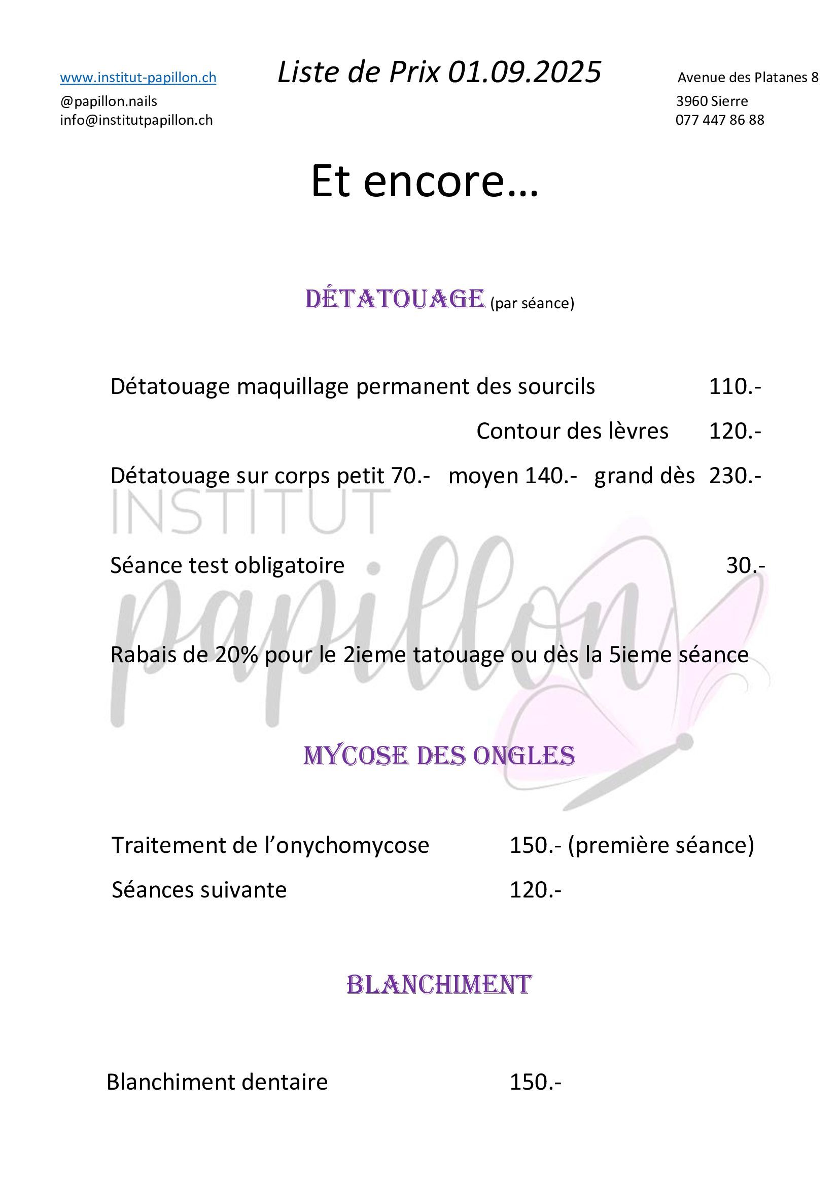- Traitement de l'onychomycose (1ère séance) : 150.-