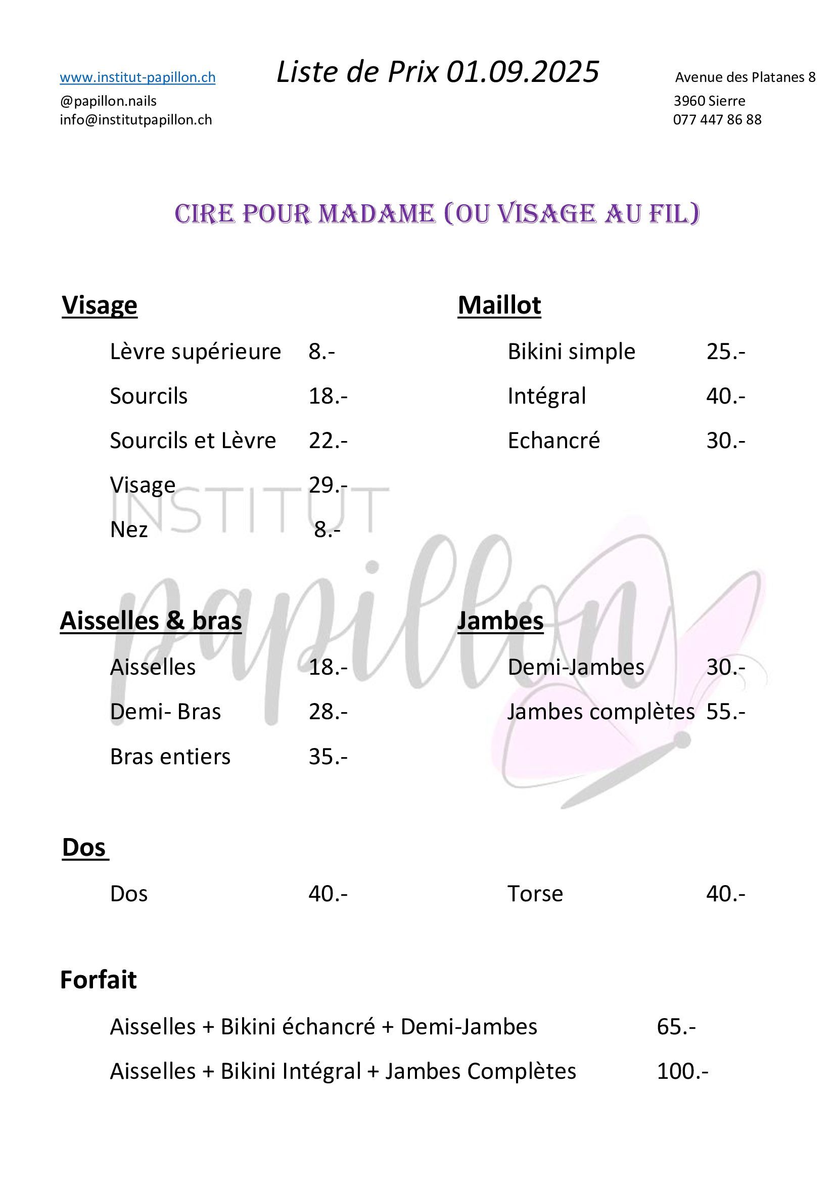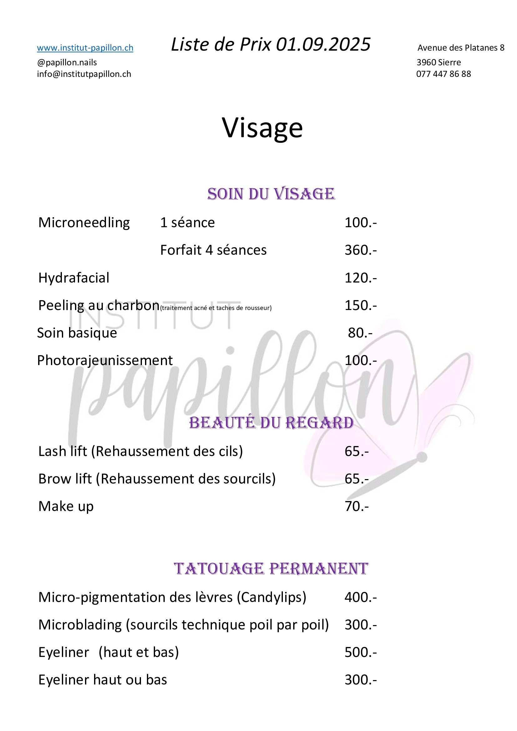 L'Institut Papillon propose de nombreux soins esthétiques pour le visage. N'hésitez pas à me contacter pour avoir plus de détails.